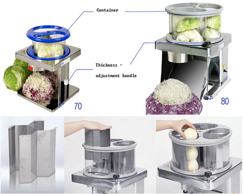 - Coupe - choux Ce produit permet aux utilisateurs de couper beaucoup de chou en peu de temps et d'ajuster facilement l'épaisseur des tranches de chou.De plus, il est fait de métal non ferreux pour ne pas rouiller.Ne touchez pas le produit et n’ajoutez pas de chou pendant que la machine est en marche.Ne mettez pas l'appareil sous tension lorsque le conteneur de produit est démonté, car il toucherait la lame.